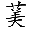 䓺 | | 拼音:měi | 四角码:44804 | | 部首:艸 | 总笔画:12 | 部首外:9 | | 98五笔:augd | 86五笔:augd | 郑码:eugd | | 统一码A:44FA | 仓颉:ttgk | 笔顺:122431121134 |