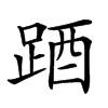 | | 拼音: | | | 部首:足 | 总笔画:14 | 部首外:7 | | 98五笔:khsg | 86五笔:khsg | 郑码:jifd | | 统一码B:2806A | 仓颉:rmmcw | 笔顺:25121211253511 |
