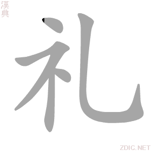英語 social custom; manners; courtesy 德語 Gabe ,Richtigkeit, Korrektur ,Ritus, Zeremonie 法語 rite,cérémonie,semaine,cadeau,présent 礼 詳細解釋詳細字義 ◎ 禮 禮 lǐ 〈動〉 (1) (會意。從示,從豊( lǐ )。“豊”是行禮之器,在字中也兼表字音。本義:舉行儀禮,祭神求福) (2) 同本義 [offer sacrificer to gods] 禮,履也。所以事神致福也。——《說文》 脩五禮。——《虞書》。馬注:“吉、兇、軍、兵、嘉也。” 脩六禮以節民性。六禮:冠、昏、喪、祭、鄉、相見。——《禮記·王制》 夫禮,天之經也,地之義也,民之行也。——《左傳·昭公二十五年》 冠、婚、朝、聘、喪、祭、賓主、鄉飲酒、軍旅此之謂九禮。——《大戴禮記·本命》 邀見講鈞禮。——清· 周容《芋老人傳》 設九賓禮於廷。——《史記·廉頗藺相如列傳》 (3) 又如:禮神(祭神);禮祠(以禮祭祀);禮誦(禮佛誦經);禮佛(頂禮於佛;拜佛) (4) 表示敬意;尊敬 [respect] 色愈恭,禮愈至,不敢出一言以復。——明· 宋濂《送東陽馬生序》 (5) 又如:禮交(以禮相交接);禮待(以禮相待);禮陳(以禮陳說);禮新(禮待新來者) (6) 禮拜,頂禮膜拜 [worship] 暗與山僧別,低頭禮白雲。——李白《秋浦歌》 (7) 又如:禮揖(行禮作揖) (8) 禮遇;厚待 [courteous reception] 禮天下之奇才。——宋· 蘇洵《六國論》 信而禮之。——明· 顧炎武《復庵記》 敬賢禮士。——《資治通鑑》 (9) 又如:禮任(禮遇信任);禮異(特殊禮遇);禮案(掌管官妓樂籍的部門;亦作“樂案”。官妓樂籍檔案) 詞性變化 ◎ 禮 禮 lǐ 〈名〉 (1) 禮節 [courtesy] 禮節甚倨。(傲慢。)——《史記》 (2) 又如:軍禮(軍人的禮節);回禮(回答別人的敬禮);禮闈(指會試。因由禮部主持,故稱);禮憲(禮儀和法令);禮檢(指合乎禮儀的品行);禮職(指有關禮儀之職務);禮門(謂君子循行的禮儀之道);禮度(猶禮法。禮儀法度) (3) 禮法;等級社會的典章制度,規定社會行爲的規範、傳統習慣 [ceremonial rites and regulations] 導之以德,齊之以禮。——《論語·爲政》 (4) 又如:禮防(指禮法。謂禮之禁亂,猶防之止水);禮典(禮法);禮宗(指婦女守禮而可爲人師法者);禮則(禮法,禮制) (5) 禮儀 [ceremony] 卒廷見相如,畢禮而歸之。——《史記》 (6) 又如:喪禮;禮記(書名。西漢戴聖編,內容爲先秦各家有關禮儀的論著);禮體(禮儀,體統);禮上(官員上任交替);禮裝(禮衣;禮服) (7) 禮物 [gift] 及受禮,唯酒一斗、鹿肉一柈。——《晉書·陸納傳》 (8) 又如:財禮(彩禮。定婚時男家送給女家的財物);禮券(用以代禮物之券) (9) 禮貌 [courtesy;etiquette;manness] 則是無禮。——《世說新語·方正》 輕而無禮。——《左傳·僖公三十三年》 (10) 又 無禮則脫。 秦則無禮。 (11) 禮文;禮書 [book on the ceremonial rites and regulations] 儒以詩禮發冢。——《莊子·外物》 禮者,禮經也。——《禮記》注 (12) 又如:禮志(言禮之書);禮書(古代記禮法之書);禮傳(指禮書);禮經(古代講禮節的經典);禮學(禮經;禮書之家) (13) 通“體”( tǐ)。身體 [body] 採葑採菲,無以下禮。——《韓詩外傳·卷九》 (14) 姓 常用詞組 禮拜禮拜禮拜堂禮拜天禮賓官禮賓司禮部禮單禮服禮官禮花禮記禮教禮節禮金禮帽禮炮禮品禮聘禮器禮讓禮尚往來禮數禮俗禮堂禮帖禮物禮賢下士禮儀禮義禮義廉恥禮遇禮讚禮則禮制禮治 【午集下】【示】礼·康熙筆画:6 ·部外筆画:1 礼 《康熙字典》【午集下】【示】礼·康熙筆画:6 ·部外筆画:1 【集韻】禮古作礼。註詳十三畫。 (禮)〔古文〕礼 又姓。【左傳】衞大夫禮孔。 【徐鉉曰】五禮莫重於祭,故从示。豊者,其器也。 【卷一】【示】 禮 《说文解字》(說文解字未收錄“礼”字頭,請參考“禮”字:)【卷一】【示】 『說文解字』 履也。所以事神致福也。从示从豊,豊亦聲。 『說文解字注』 礼 音韻方言国际音标li˨˩˦ 日语读音UYA韩语罗马LYEY越南语lễ 粤语lai5潮州话loi2(lói) [揭阳、潮阳]li2(lí) 近代音中古音來母薺韻上聲禮小韻盧啓切四等開口;上古音黄侃系统:來母灰部 ;王力系统:來母脂部 ; 官话 吴语 赣语 湘语 闽语 粤语 平话 客语 韵书 上古音 中古音 礼 字源字形字源演變 重定向至「豊」。