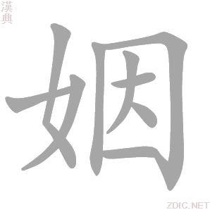 【丑集下】【女】姻·康熙筆画:9 ·部外筆画:6 姻 《康熙字典》【丑集下】【女】姻·康熙筆画:9 ·部外筆画:6 【廣韻】於眞切【集韻】【韻會】【正韻】伊眞切, 又妻父曰婚,壻父曰姻。今男女之家皆曰姻。 又叶烏前切,音煙。【焦仲卿詩】雖與府吏要,渠會永無緣。登卽許相和,便可作婚姻。 或作婣。別作 【卷十二】【女】 姻 《说文解字》【卷十二】【女】 『說文解字』 壻家也。女之所因,故曰姻。从女从因,因亦聲。婣,籒文姻从 『說文解字注』