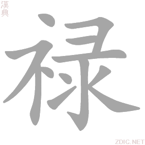 英語 blessing, happiness, prosperity 法語 réussite dans sa carrière 禄 詳細解釋詳細字義 ◎ 祿lù 〈名〉 (1) (形聲。從示,錄聲。本義:福氣、福運) (2) 同本義 [happiness] 祿,福也。——《說文》 福祿如茨。——《詩·小雅·瞻彼洛矣》 使女受祿如天。——《儀禮·少牢饋食禮》 又重之以寡君之不祿。——《國語·晉語》 短折不祿。——《儀禮·曲禮》 其胤維何?天被爾祿。——《詩·大雅·既醉》 而後可以殿邦國,同福祿,來遠人。——《左傳·襄公十一年》 兒已薄祿相。——《玉臺新詠·古詩爲焦仲卿妻作》 (3) 又如:祿祚(福分和壽命);祿命(古代宿命論者認爲人生的盛衰,禍福、壽天、貴賤等均由天定);祿相(有祿的相的樣子。舊時相術認爲人的形體、氣色等與人的貴賤貧富、天壽等有關);祿氣(食祿之氣運) (4) 官吏的俸給 [salary] 惲幸有餘祿。—— 楊惲《報孫會宗書》 你就起個名字,叫作祿蠹。——《紅樓夢》 (5) 又如:高官厚祿;爵祿(爵位和俸祿);薄祿(薪水);祿蠹(領取官俸的蛀蟲);祿仕(爲食俸祿而居官);祿糈(古代官吏的俸給) (6) 祿位 [salary and position]。如:祿利(爵祿之利);祿餌(以祿位爲誘餌);祿蔭(憑藉先人餘蔭而取得的祿位) (7) 賞賜物 [reward]。如:祿料(料錢。唐宋間官吏除歲祿、月俸外的一種食料津貼) (8) 通“錄”。冊籍 [record] 皆辨其物而奠其祿。——《周禮·天官下·職幣》 詞性變化 ◎ 祿lù 〈動〉 (1) 給予俸祿 [give salary] 故,上賢,祿天下;次賢,祿一國;下賢,祿田邑。——《荀子》 (2) 又如:祿絕(死的諱辭);祿親(祿養。以俸祿養親);祿使(給俸祿供使用);祿勳(給予有功者以俸祿) (3) 通“錄”。總領 [lead;head] 社稷不定,臣祿齊國之政。——《管子·大匡》 常用詞組 祿米祿位祿隱 【午集下】【示】祿·康熙筆画:13 ·部外筆画:8 祿 《康熙字典》(康熙字典未收錄“禄”字頭,請參考“祿”字。)【午集下】【示】祿·康熙筆画:13 ·部外筆画:8 【唐韻】【集韻】【韻會】【正韻】 又俸也。居官所給廩。【禮·王制】位定然後祿之。【周禮·天官·大宰】以八柄詔王馭羣臣,二曰祿。【疏】以功詔祿。祿,所以富臣下,故云。【禮·曲禮】士曰不祿。【疏】士祿以代耕。不祿,不終其祿也。 又司祿,星名。【史記·天官書】文昌宮六曰司祿。 又回祿,火神。【左傳·昭十八年】鄭禳火於回祿。 又姓。紂子祿父後。 又州名。廣南化外有福祿州,唐總章二年置。 又天祿,獸名。【前漢·西域傳註】似鹿,長尾,一角者爲天祿,兩角者爲辟邪。漢有天祿閣,因獸立名,藏祕書。 又【廣韻】龍玉切,音錄。祿祿,形貌爲禮也。陸德明說。 又叶錄直切,音力。【漢昭帝冠詞】摛顯先帝之光耀,以承皇天之嘉祿。欽奉仲春之吉辰,普遵大道之郊域。 又叶歷各切,音落。【前漢·敘傳】位過厥任,鮮終其祿。博之翰音,鼓妖先作。 【卷一】【示】 祿 《说文解字》(說文解字未收錄“禄”字頭,請參考“祿”字:)【卷一】【示】 『說文解字』 福也。从示彔聲。盧谷切 『說文解字注』 福也。詩言福祿多不別。商頌五篇。㒳言福、三言祿。大恉不殊。釋詁、毛詩傳皆曰。祿、福也。此古義也。鄭旣醉箋始爲分別之詞。从示。彔聲。盧谷切。三部。 禄 音韻方言国际音标lu˥˧ 日语读音FUCHI SAIWAI 粤语luk6 近代音中古音來母屋韻入聲禄小韻盧谷切一等合口;上古音黄侃系统:來母屋部 ;王力系统:來母屋部 ; 上古音 禄 字源字形字源演變 重定向至「祿」。