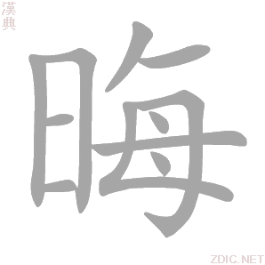 【辰集上】【日】晦·康熙筆画:11 ·部外筆画:7 晦 《康熙字典》【辰集上】【日】晦·康熙筆画:11 ·部外筆画:7 【唐韻】荒內切【集韻】【韻會】呼內切【正韻】呼對切, 又【易·隨卦】君子以嚮晦入宴息。【註】晦,晏也。 又【詩·陳風】風雨如晦。【傳】晦,昏也。 又【詩·周頌】遵養時晦。【傳】晦,昧也。 又【左傳·成十四年】《春秋》之稱,微而顯,志而晦。【註】晦亦微,謂約言以紀事,事敘而名微。 又【左傳·昭元年】六氣,曰隂、陽、風、雨,晦、明也。【註】晦,夜也。 又【公羊傳·僖十五年】晦者何,冥也。 又【爾雅·釋天】霧謂之晦。 又【班固·幽通賦】鮮生民之晦在。【註】晦,亡幾也。 【卷七】【日】 晦 《说文解字》【卷七】【日】 『說文解字』 月盡也。从日每聲。荒內切 『說文解字注』