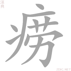 英語 consumption; tuberculosis 德語 Schwindsucht, erschöpft(S) 法語 tuberculose 痨 詳細解釋詳細字義 ◎ 癆 癆 láo 〈名〉 (1) (形聲。從疒( chuáng),表示與疾病有關,勞聲。本義:積勞瘦削) (2) 勞損病 [internal injury caused by overstrain] 疲,今人以積勞瘦削爲癆病。——《正字通》 (3) 又如:癆怯(虛勞);癆傷(猶勞傷) (4) 結核病的俗稱。多指肺結核 [tuberculosis]。如:癆瘵(肺結核病。俗稱“肺癆”);癆嗽(患癆病而咳嗽);癆蟲(舊時稱專染肺病的微生物爲癆蟲) 常用詞組 癆病 【午集中】【疒】癆·康熙筆画:17 ·部外筆画:12 癆 《康熙字典》(康熙字典未收錄“痨”字頭,請參考“癆”字。)【午集中】【疒】癆·康熙筆画:17 ·部外筆画:12 【唐韻】【集韻】 又【博雅】痛也。 又【集韻】憐蕭切,音聊。 又郎刀切,音勞。義 又【正字通】今人以積勞 【卷七】【疒】 癆 《说文解字》(說文解字未收錄“痨”字頭,請參考“癆”字:)【卷七】【疒】 『說文解字』 朝鮮謂藥毒曰癆。从疒勞聲。郎到切 『說文解字注』 朝鮮謂藥毒曰癆。从 痨 音韻方言国际音标lɑu˧˥ 粤语lou4潮州话lau5 吴语 闽语 韵书 上古音 中古音 痨 字源字形字源演變 重定向至「癆」。