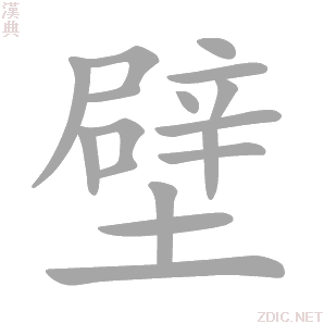 【丑集中】【土】壁·康熙筆画:16 ·部外筆画:13 壁 《康熙字典》【丑集中】【土】壁·康熙筆画:16 ·部外筆画:13 【唐韻】北激切【集韻】【韻會】【正韻】必歷切, 又軍壘。【前漢·高帝紀】帝晨馳入韓信張耳壁,奪之軍。【周亞夫傳】吳楚反,亞夫救梁,引兵走昌邑,堅壁而守。 又星名。二十八宿之一。【晉書·天文志】東壁二星主文籍,天下圖書之府。 又地名。壁州,在三巴,本漢宕渠地,唐高祖武德初置,辟州節度使鄭畋有記。 又赤壁,在蒲圻。【荆州記】蒲圻縣沿江南岸百里,名赤壁,昔周瑜破曹操處。黃州赤壁乃赤鼻山。【水經注】江水左逕赤鼻山,下爲赤鼻磯。蘇軾赤壁前賦及長短句,人道是三國周郞赤壁,蓋傳疑也。 又凡石厓之峭削皆曰壁。【馬岌·石壁銘】靑壁千尋。【江淹詩】緬映石壁素。【神仙傳】帛和入西城山,王公令熟視石壁,二年漸覺有文字,三年得神丹方及五嶽圖。 本作壁,十四畫。說文、經史皆同。字彙从省作壁,入十三畫,因之。壁字从 【卷十三】【土】 壁 《说文解字》【卷十三】【土】 『說文解字』 垣也。从土辟聲。比激切 『說文解字注』