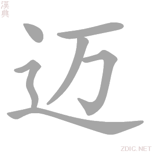 英语 take a big stride; pass by 德语 Duplikation(S),einen Schritt machen 法语 âgé,d'un âge avancé,enjamber,faire une enjambée,passer par dessus,faire des pas 迈 详细解释详细字义 ◎ 迈 邁 mài 〈动〉 (1) (形声。从辵 夲义:远行) (2) 同本义 [journey] 丙子九月,辞家西迈。——钱谦益《徐霞客传》 我日斯迈,而月斯征。——《诗·小雅·小宛》 (3) ∪缏跬(勇行迈进);迈迹(迈行;远行) (4) 行走;跨步 [walk;step] 行迈靡靡,中心摇摇。——《诗·王风·黍离》 (5) 又如:迈过门槛;迈腿;迈步(举脚向前走;跨出步子);迈开(向前跨出) (6) 超过,跨越 [surpass] 三王可迈,五帝可越。——《三国志·高堂隆传》 (7) 又如:迈世(超越时代);迈秀(超逸秀拔);迈绩(超绝的功绩) (8) 时光流逝 [pass] 今我不乐,日月其迈。——《诗·唐风·蟋蟀》 (9) 又如:迈迈(往逝的样子);迈往(时光流逝) (10) 通“劢”。勤勉 [encourage] 皋陶迈种德。——《左传·庄公八年》 (11) 又如:迈德(勉力树德);迈仁(勉力实行仁政);迈古(勉力学古) 词性变化 ◎ 迈 邁 mài 〈形〉 (1) 超然不俗 [aloof] 风神高迈,客仪俊爽。——《晋书·裴楷传》 (2) 又如:迈气(豪放的气概);迈达(豪爽旷达);迈俗(超脱世俗);迈秀(超逸秀拔);迈峻(豪迈峻拔);迈往(超脱凡俗) (3) 老 [old] 衰迈欠风尘。——杜甫《上白帝城》 (4) 又如:老迈;年迈;迈终(老死);迈景(暮年;老境);迈寿(高年;长寿) ◎ 迈 邁 mài 〈名〉 英里的音译(1英里=1.6093 千米。用于机动车行车速度) [mile]。如:一个钟头走60迈 常用词组 迈步迈进迈四方步 【酉集下】【辵】邁·康熙筆画:20 ·部外筆画:13 邁 《康熙字典》(康熙字典未收录“迈”字头,请参考“邁”字。)【酉集下】【辵】邁·康熙筆画:20 ·部外筆画:13 【廣韻】莫話切【集韻】【韻會】莫敗切【正韻】莫懈切, 又【小雅】我日斯邁。 又【正韻】往也。【詩·魯頌】從公于邁。 又【小雅】後予邁焉。【註】過也。 又老也。【書·秦誓】日月逾邁。【後漢·皇甫規傳】年齒之不邁。 又天子以時巡行曰邁。【詩·周頌】時邁其邦。 又邁邁,不顧也。【詩·小雅】視我邁邁。 又與勵通,勇往力行之意。【書·大禹謨】臯陶邁種德。【註】言臯陶勇往力行,以布其德也。 又【說命】予惟克邁乃訓。 又叶力制切,音利。【詩·唐風】日月其邁。叶上逝。 【說文】作 【卷二】【辵】 邁 《说文解字》(说文解字未收录“迈”字头,请参考“邁”字:)【卷二】【辵】 『說文解字』 遠行也。从辵蠆省聲。 『說文解字注』 遠行也。釋言、毛傳曰。邁、行也。从辵。萬聲。莫話切。十五部。萬聲在十四部。合音也。 迈 音韵方言国际音标mĄi˥˧ 粤语maai6潮州话mai6 官话 晋语 吴语 赣语 湘语 闽语 粤语 平话 客语 韵书 上古音 中古音 迈 字源字形字源演变 重定向至「邁」。