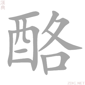 【酉集下】【酉】酪·康熙筆画:13 ·部外筆画:6 酪 《康熙字典》【酉集下】【酉】酪·康熙筆画:13 ·部外筆画:6 【唐韻】盧各切【集韻】【韻會】【正韻】歷各切, 又【六書故】酒類也。北方以馬乳爲酪,故因謂湩酪,而酥與醍醐皆因之。【禮·雜記】功衰,飮水漿。無鹽酪不能食,食鹽酪可也。【註】酢酨也。與乳漿異。 又【正字通】酪有乾濕二種。【元·飮膳正要】造法,用乳半杓,鍋內炒過,入餘乳熬數十沸,頻以杓縱橫攪之,傾出,罐盛待冷,略取浮皮爲酥,入舊酪少許,紙封貯卽成酪。 又乾酪法,以酪就日,曝使結,掠去浮皮,再曝,至皮盡却入釜,炒少時,器盛,再曝作塊,收用。 又【集韻】魯故切,音路。醴屬。 【集韻】或作 【卷十四】【酉】 酪 《说文解字》【卷十四】【酉】 『說文解字』 乳 © 汉典 酪 音韵方言国际音标lɑu˥˧ 日语读音CHICHIZAKE韩语罗马LAK现代韩语낙 락 客家话[海陆腔] lok8 [客英字典] lok8 [东莞腔] lok7 [客语拼音字汇] log6 [台湾四县腔] lok8 [宝安腔] lok7 [梅县腔] lok8粤语lok3 lou6 近代音來母蕭豪韻入聲作去聲落小空;來母歌戈韻入聲作去聲落小空;中古音來母鐸韻入聲落小韻盧各切一等開口;上古音黄侃系统:來母鐸部 ;來母鐸部 ;王力系统:來母鐸部 ;來母鐸部 ; 官话 晋语 吴语 赣语 湘语 闽语 粤语 平话 客语 韵书 上古音 中古音 酪 字源字形字源演变