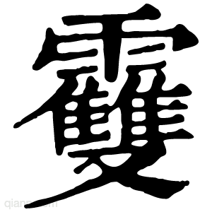 | 释义 | ![]() ![]() 拼音shuāng 注音ㄕㄨㄤ 部首雨部部外笔画18画总笔画26画 五笔FWYC仓颉MBOGE郑码FVNX结构上下统一码291BF笔顺一丶フ丨丶一ノ丶ノ丨丶一一一丨一ノ丨丶一一一丨一フ丶 基本解释统一码