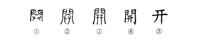 “太白发句,谓之开门见山。”这个“开”字原为会意字。①是玺文的形体,外部是两扇大门,内部的“一”是门闩,下面是一双手,表示用双手拉开门闩。②是《说文》中的古文形体,与玺文基本相似。③是小篆的形体,内部发生了讹变。④为楷书繁体字。⑤为简化字。 《说文》:“開,张也。”以“张”来释“开”字的本义,不够确切。其实“开”的本义也就是“开门”,如《南史•梁本纪下》:“开门揖盗。”这是比喻引进坏人,自招祸患。由“开门”义又可以引申为“张开”义,如《庄子•盗跖》:“开口而笑者。”另外还可以引申为“分开”、“开发”等。 请注意:“开明”一词在古籍中也经常见到,比如《淮南子•地形训》:“东方……曰开明之门。”“明”,指太阳。日出东方,则天下大明,所以这里的“幵明”就是“启明”,代表东方。另外,《山海经•海内西经》:“开明,兽身,大类虎。”这里的“开明”则又是传说中的兽名。可见“开明”一词古今词义是不相同的。 ——左民安《细说汉字》 扩展阅读