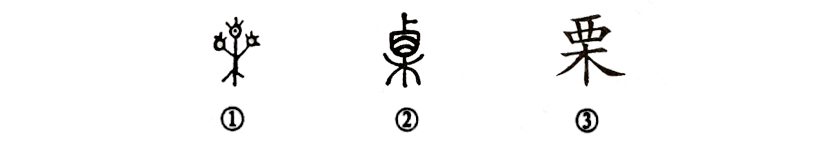 ”,其下是“木”。楷书③的上部又变成了“覀”,根本看不出栗子的形状了。