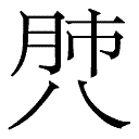 ⿰月不(大陆、香港、日本、韩国、台湾),朝鲜(无示例字形)