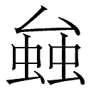 ⿱亡䖵(大陆、香港、日本、韩国、台湾),朝鲜(无示例字形)