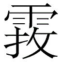 ⿱雨散(大陆、香港、日本、韩国、台湾),朝鲜(无示例字形)