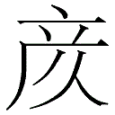 ⿸产彡(大陆、日本、韩国、台湾),朝鲜(无示例字形)